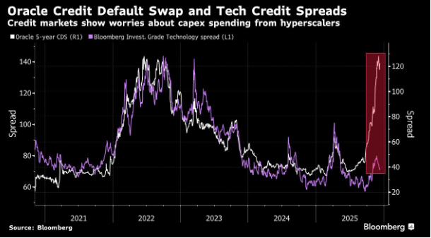 ORCL -11% mixed qrtr / AI debt funding concerns were unresolved. Ppl increasingly losing confidence in Oracle’s ability to turn a large and still-expanding backlog into durable, profitable rev streams ... capex outlook for this FY went up by $15B, implying they will spend ~$50B in total, which is an astounding 75% (!) of rev in F26 ……….. AI complex: ORCL opened the door wider to non-Nvidia GPUs