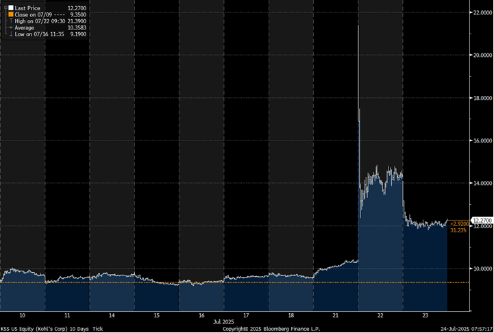 AEO – Up 18% - The Sydney Sweeny campaign is red hot all over social media currently which has the 22MM shares short running scared.